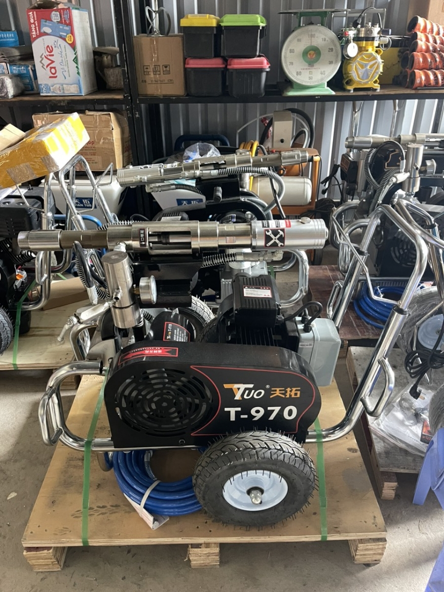 Máy phun bột đặc T-970 được sản xuất với các linh kiện cao cấp (bơm dầu Đài Loan, lọc dầu của Mỹ, piston to khỏe, có hệ thống quạt tản nhiệt giúp mát máy). Giúp máy hoạt động bền bỉ, hoàn toàn đáp ứng khối lượng công việc lớn cho quý khách hàng.