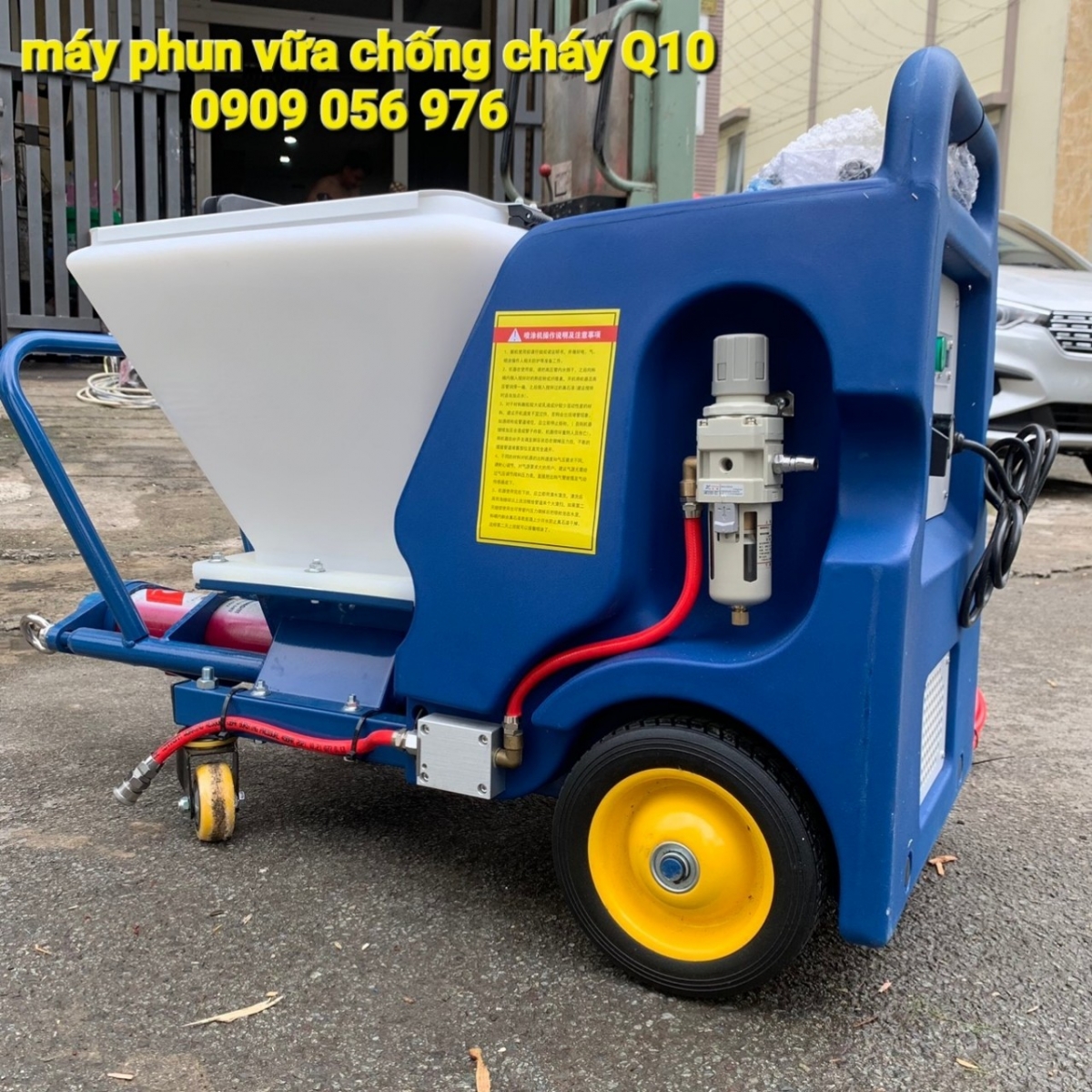 Lưu ý: Máy phun vữa chống cháy Q10 phải dùng kết hợp với máy nén khí 4HP – bình 100 lít (máy nén khí có dầu)